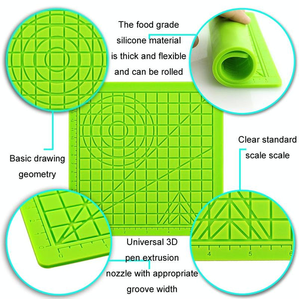2. The groove width of the silicone pad is 1.5mm, which is universal for various 3D pen print heads. The extrusion of the mold pad is compatible with various 3D filaments and 3D pen nozzles.