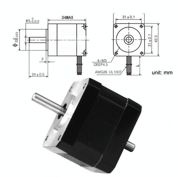 42BYGH34-1304B 1.3A 0.30N 3D Printer 42-Step Moto Dual Output Shaft Carving Machine