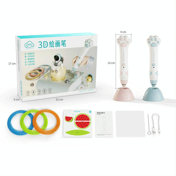 Cat Claw USB Charging Low Temperature 3D Printing Pen Children DIY Graffiti 3D Painting Pen(Mint Green)