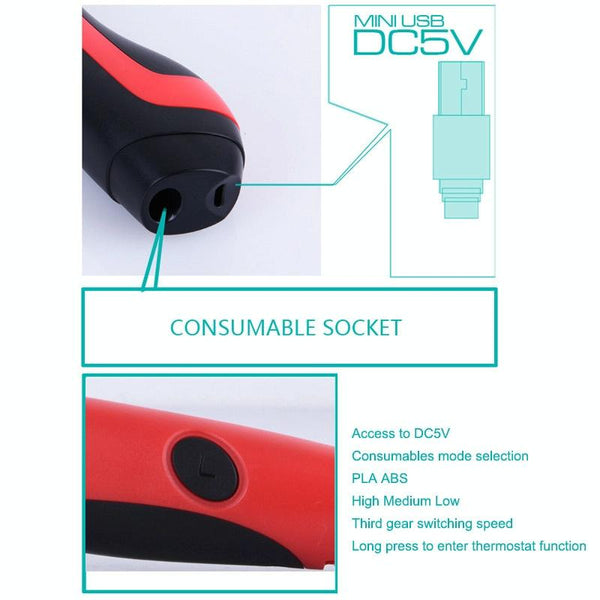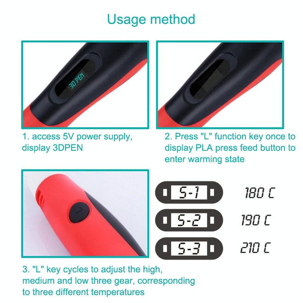 Gen 6th ABS / PLA Filament Kids DIY Drawing 3D Printing Pen with LCD Display(Yellow+Black)