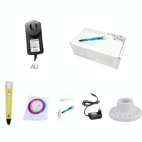 Hand-held 3D Printing Pen, AU Plug (Yellow)