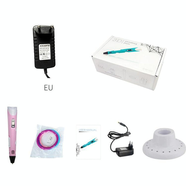 Hand-held 3D Printing Pen, EU Plug(Pink)