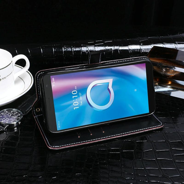 For Alcatel 1B 2020 idewei Crocodile Texture Horizontal Flip Leather Case with Holder & Card Slots & Wallet(Black)
