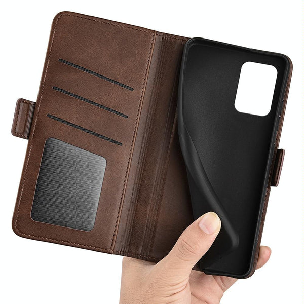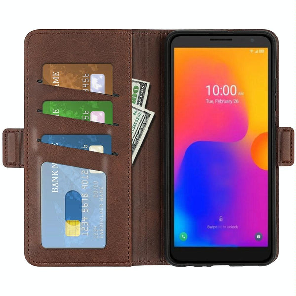 For Alcatel 1B 2022 Dual-side Magnetic Buckle Horizontal Flip Leather Phone Case(Brown)