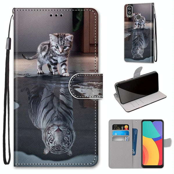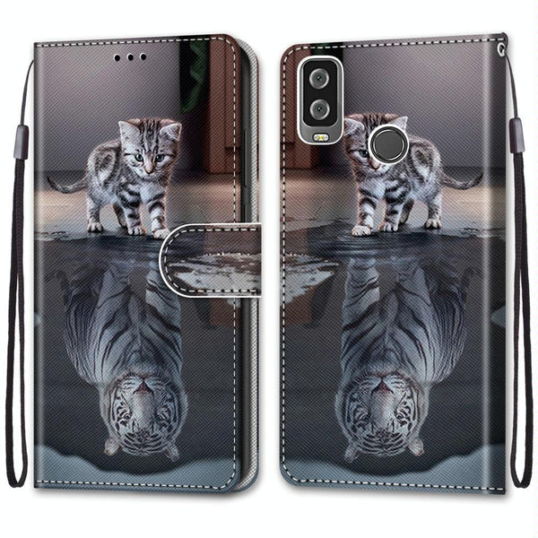 For Alcatel 1L (2021) Coloured Drawing Cross Texture Horizontal Flip PU Leather Case with Holder & Card Slots & Wallet & Lanyard(Cat Becomes Tiger)
