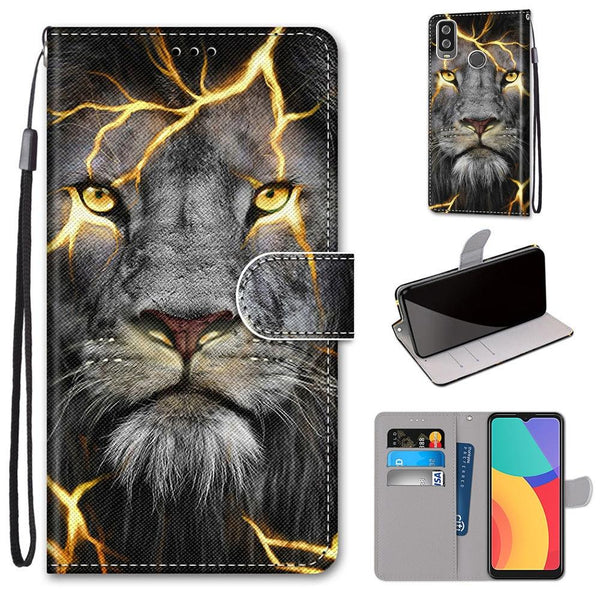 For Alcatel 1L (2021) Coloured Drawing Cross Texture Horizontal Flip PU Leather Case with Holder & Card Slots & Wallet & Lanyard(Fission Lion)