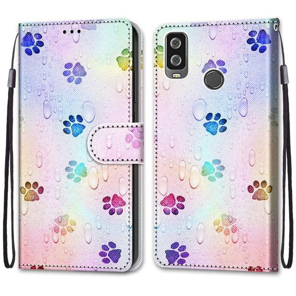 For Alcatel 1L (2021) Coloured Drawing Cross Texture Horizontal Flip PU Leather Case with Holder & Card Slots & Wallet & Lanyard(Footprint Water Drops)