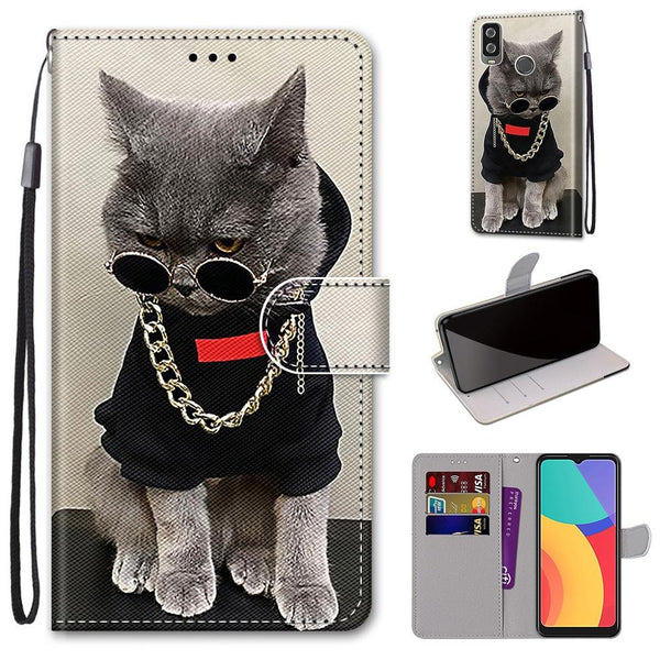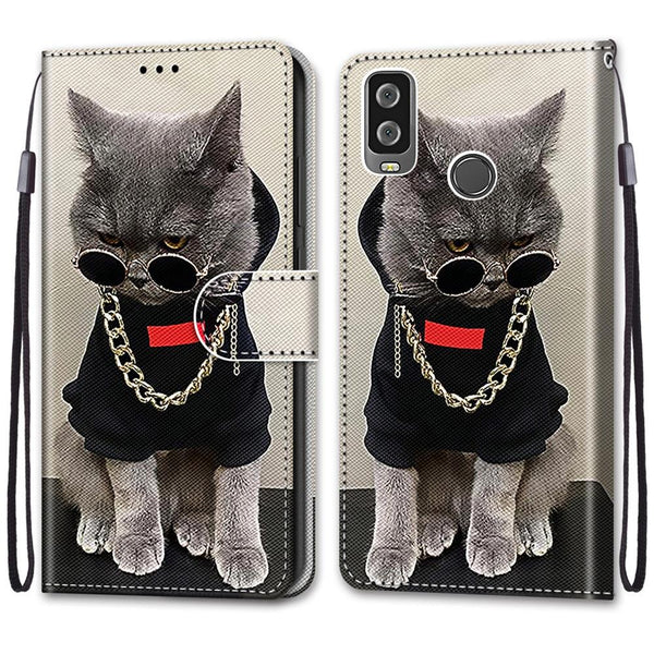 For Alcatel 1L (2021) Coloured Drawing Cross Texture Horizontal Flip PU Leather Case with Holder & Card Slots & Wallet & Lanyard(Golden Chain Grey Cat)