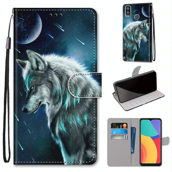 For Alcatel 1L (2021) Coloured Drawing Cross Texture Horizontal Flip PU Leather Case with Holder & Card Slots & Wallet & Lanyard(Pensive Wolf)