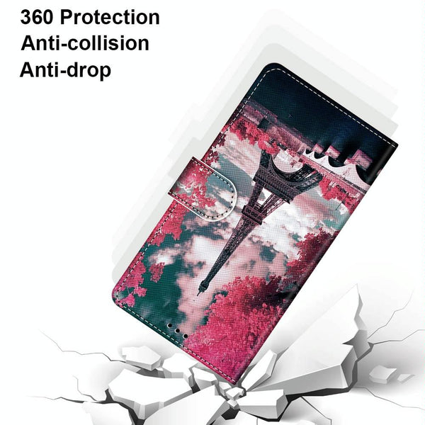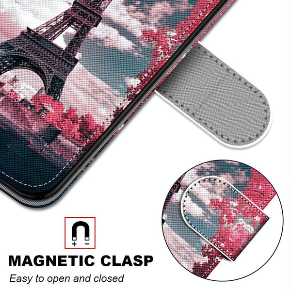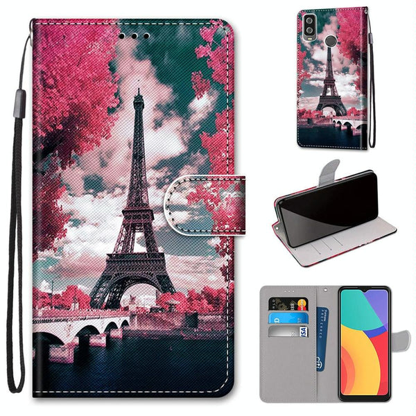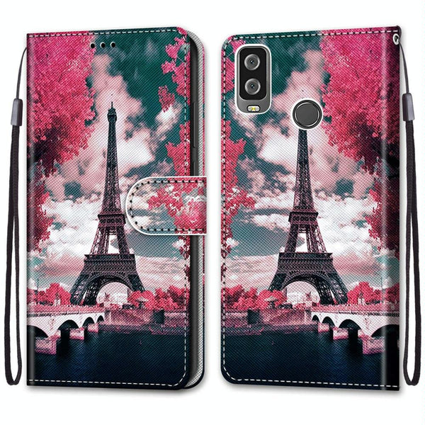 For Alcatel 1L (2021) Coloured Drawing Cross Texture Horizontal Flip PU Leather Case with Holder & Card Slots & Wallet & Lanyard(Pink Flower Tower Bridge)