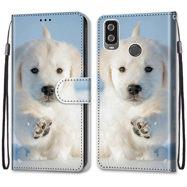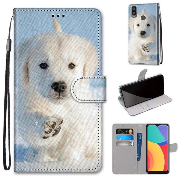 For Alcatel 1L (2021) Coloured Drawing Cross Texture Horizontal Flip PU Leather Case with Holder & Card Slots & Wallet & Lanyard(Snow Puppy)