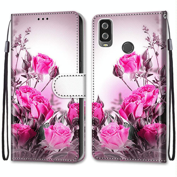 For Alcatel 1L (2021) Coloured Drawing Cross Texture Horizontal Flip PU Leather Case with Holder & Card Slots & Wallet & Lanyard(Wild Rose)
