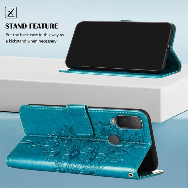 For Alcatel 1L 2021 Embossed Butterfly Leather Phone Case(Blue)