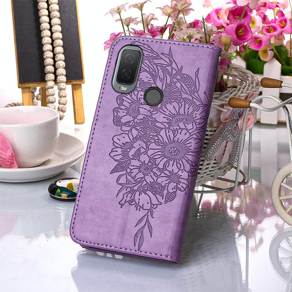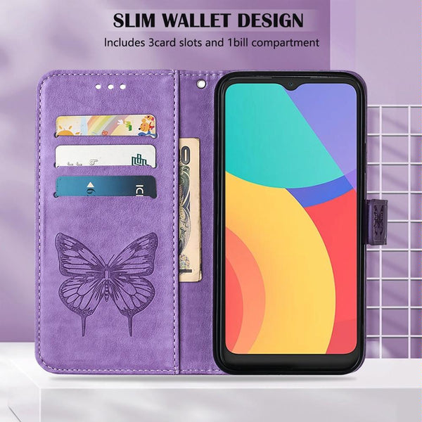 For Alcatel 1L 2021 Embossed Butterfly Leather Phone Case(Purple)