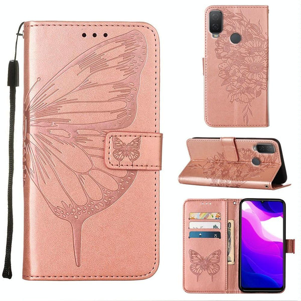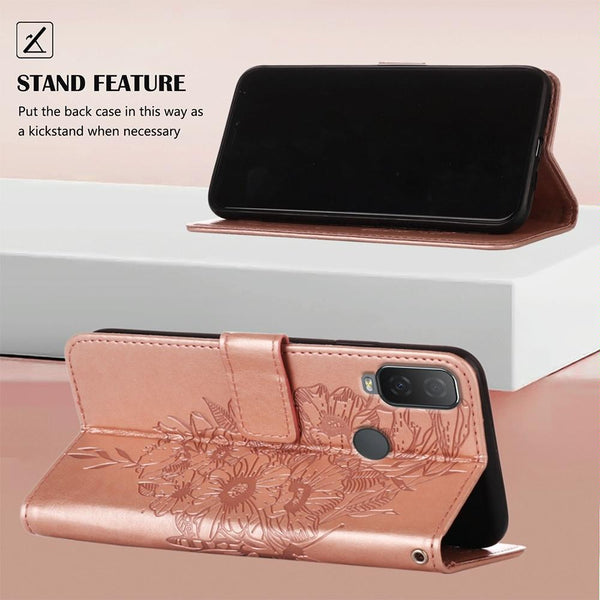 For Alcatel 1L 2021 Embossed Butterfly Leather Phone Case(Rose Gold)