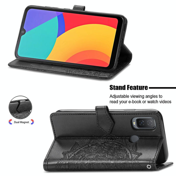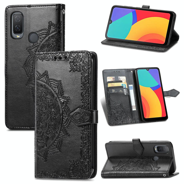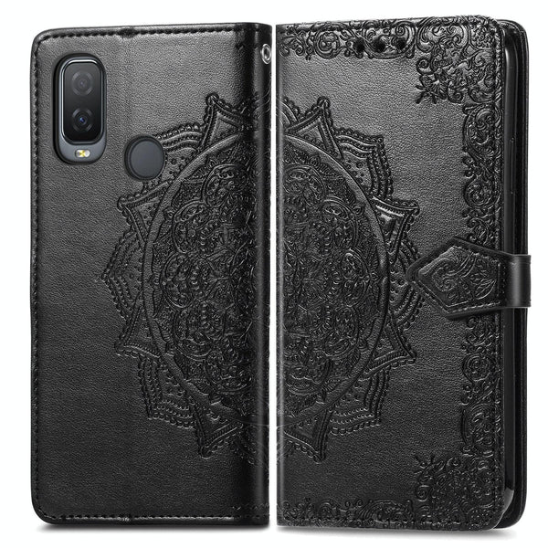 For Alcatel 1L 2021 Mandala Flower Embossed Horizontal Flip Leather Case with Holder & Three Card Slots & Wallet & Lanyard(Black)