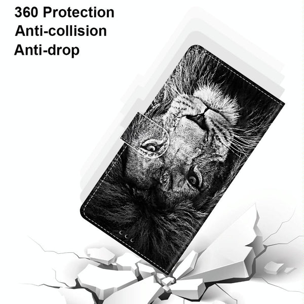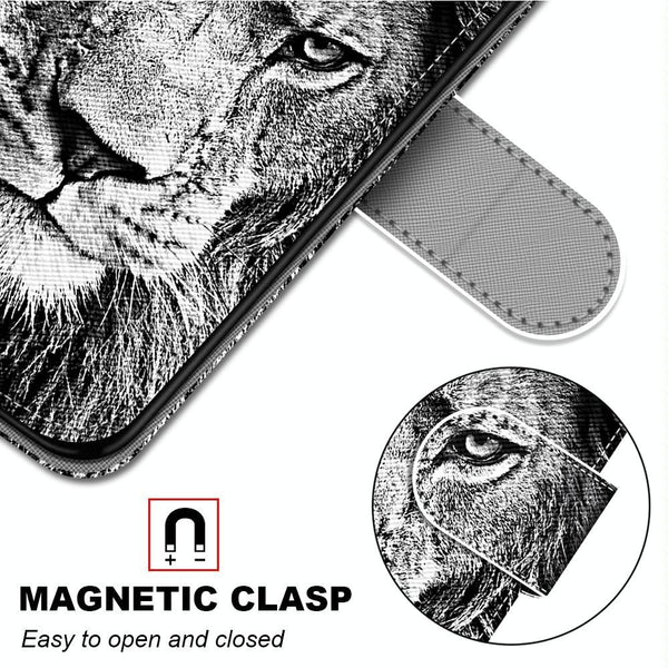 For Alcatel 1S (2020) / 3L (2020) Coloured Drawing Cross Texture Horizontal Flip PU Leather Case with Holder & Card Slots & Wallet & Lanyard(Black White Lion Head)