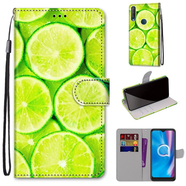 For Alcatel 1S (2020) / 3L (2020) Coloured Drawing Cross Texture Horizontal Flip PU Leather Case with Holder & Card Slots & Wallet & Lanyard(Green Lemon)