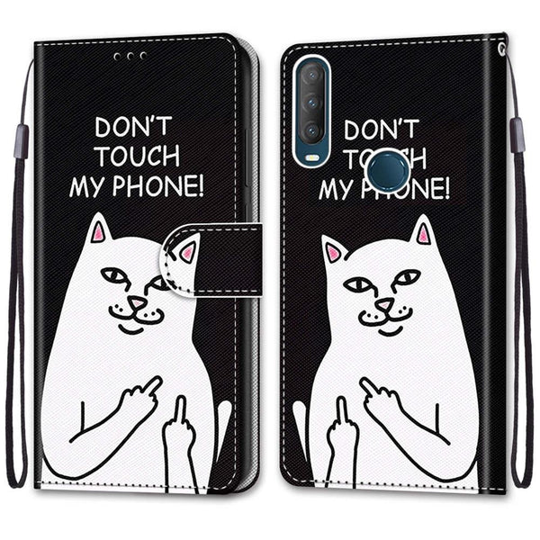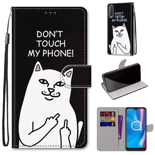 For Alcatel 1S (2020) / 3L (2020) Coloured Drawing Cross Texture Horizontal Flip PU Leather Case with Holder & Card Slots & Wallet & Lanyard(Middle Finger White Cat)