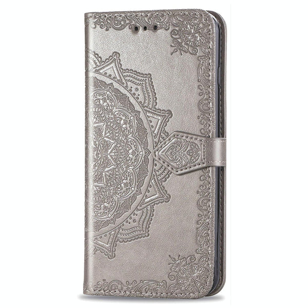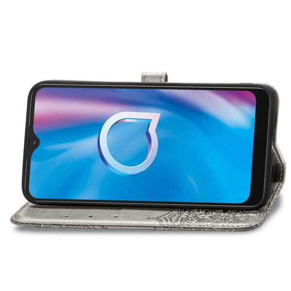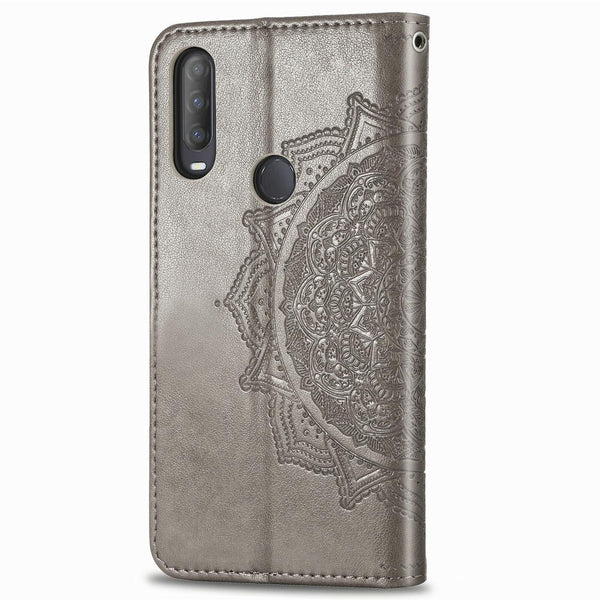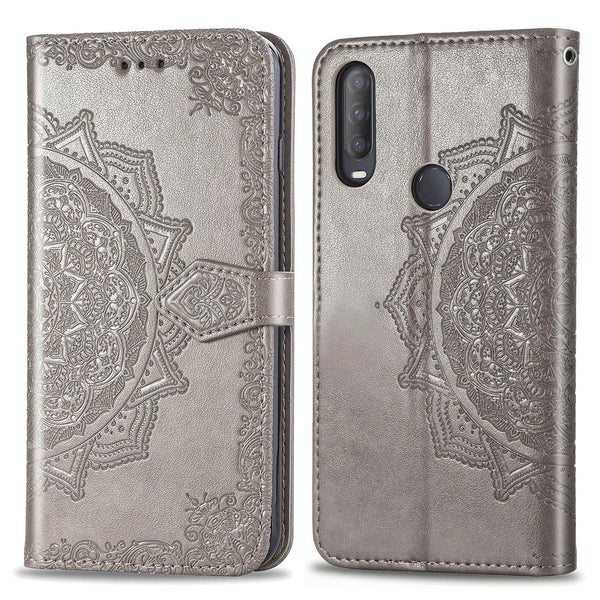 ForAlcatel 1S (2020) Embossed Mandala Pattern TPU + PU Horizontal Flip Leather Case with Holder & Three Card Slots & Wallet(Gray)