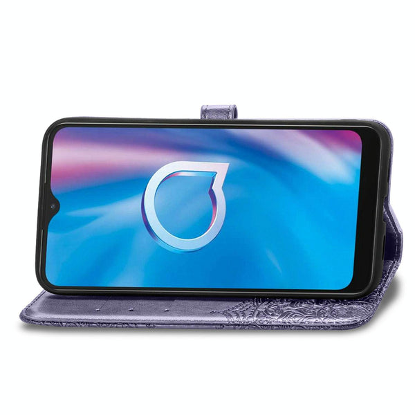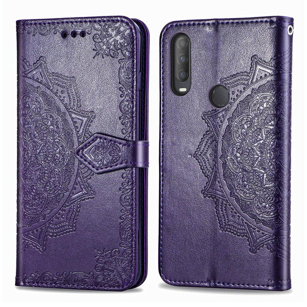 ForAlcatel 1S (2020) Embossed Mandala Pattern TPU + PU Horizontal Flip Leather Case with Holder & Three Card Slots & Wallet(Purple)