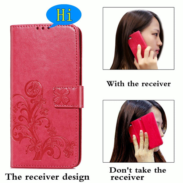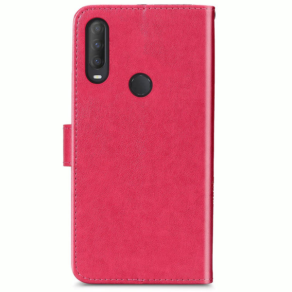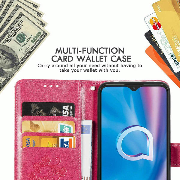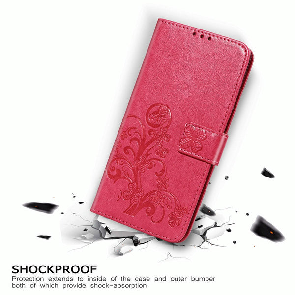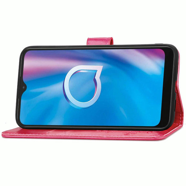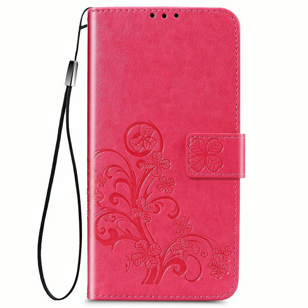ForAlcatel 1S (2020) Four-leaf Clasp Embossed Buckle Mobile Phone Protection Leather Case with Lanyard & Card Slot & Wallet & Holder Function(Magenta)