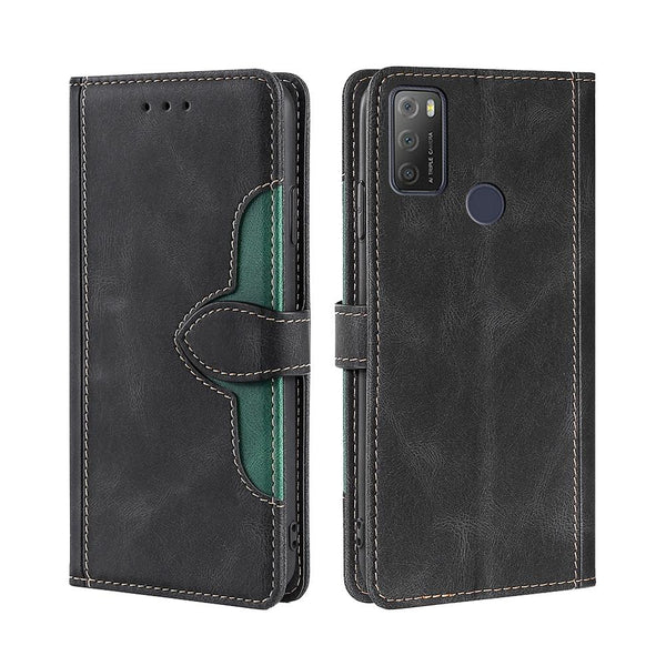 For Alcatel 1S 2021 / 3L 2021 Skin Feel Straw Hat Magnetic Buckle Leather Phone Case(Black)