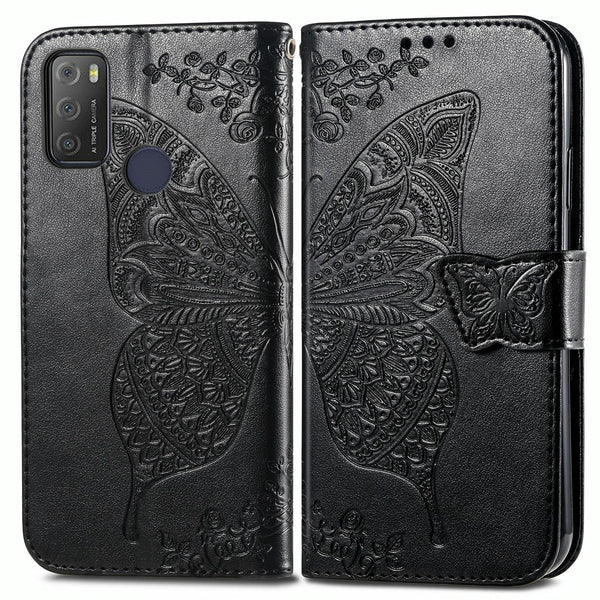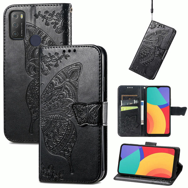 For Alcatel 1S 2021 Butterfly Love Flower Embossed Horizontal Flip Leather Case with Holder & Card Slots & Wallet & Lanyard(Black)