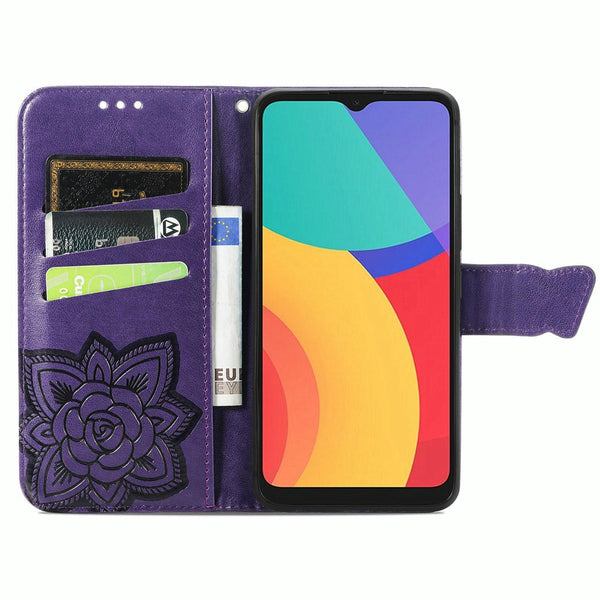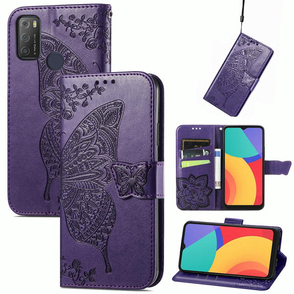For Alcatel 1S 2021 Butterfly Love Flower Embossed Horizontal Flip Leather Case with Holder & Card Slots & Wallet & Lanyard(Dark Purple)