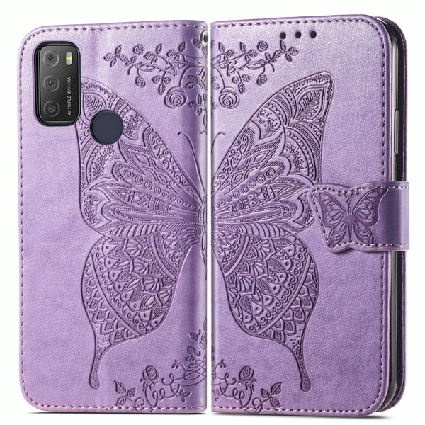 For Alcatel 1S 2021 Butterfly Love Flower Embossed Horizontal Flip Leather Case with Holder & Card Slots & Wallet & Lanyard(Light Purple)