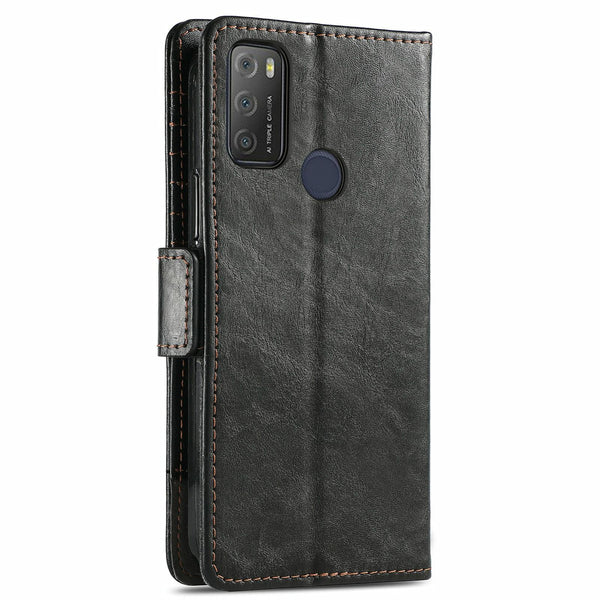 For Alcatel 1S (2021) CaseNeo Business Splicing Dual Magnetic Buckle Horizontal Flip PU Leather Case with Holder & Card Slots & Wallet(Black)