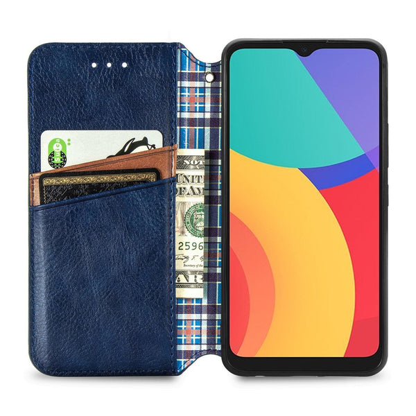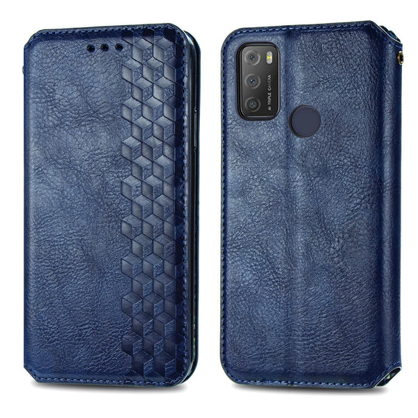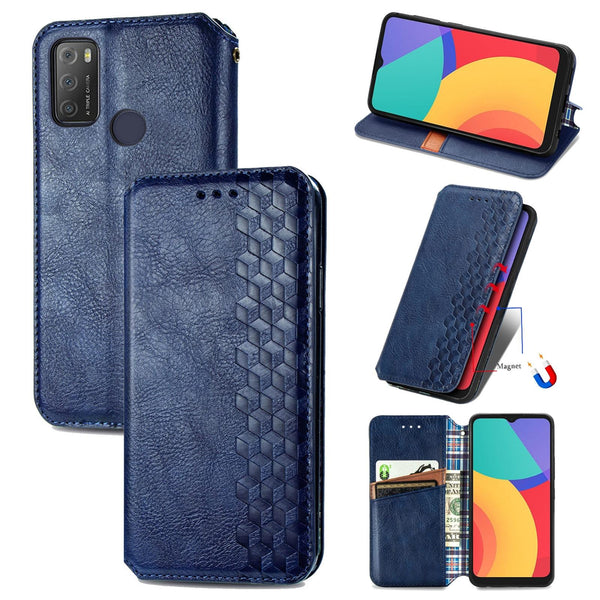 For Alcatel 1S 2021 Cubic Grid Pressed Horizontal Flip Magnetic PU Leather Case with Holder & Card Slots & Wallet(Blue)