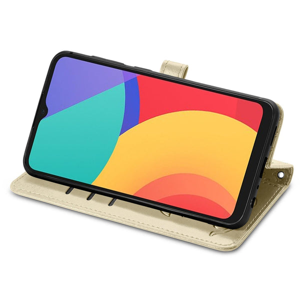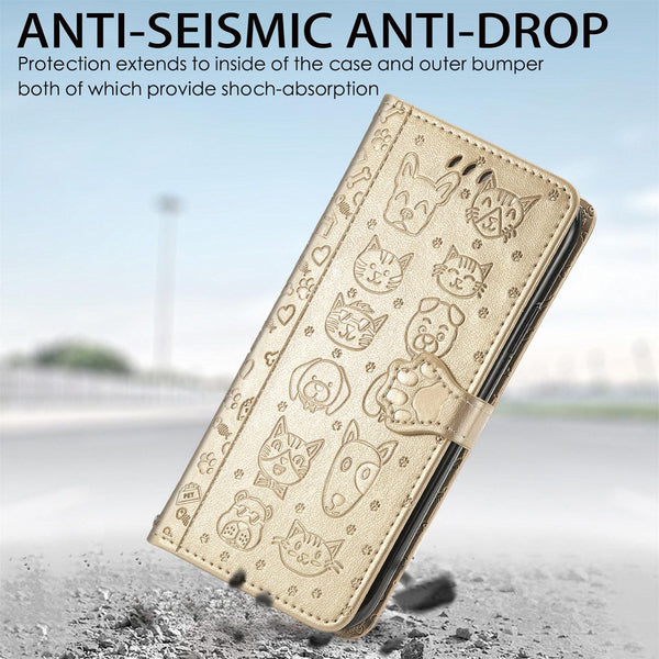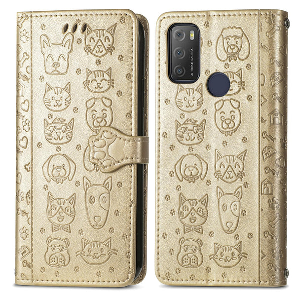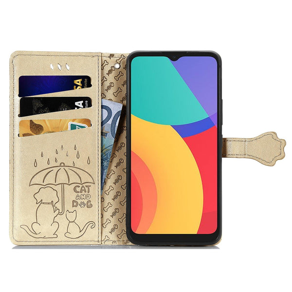 For Alcatel 1S 2021 Lovely Cat and Dog Embossing Pattern Horizontal Flip Leather Case , with Holder & Card Slots & Wallet & Cartoon Clasp & Lanyard(Gold)