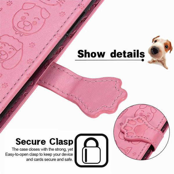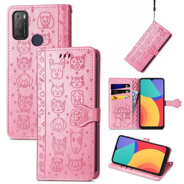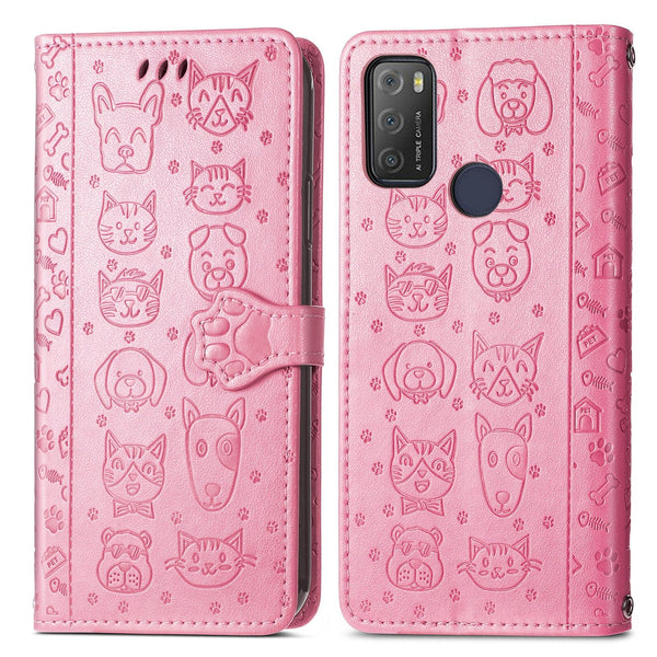 For Alcatel 1S 2021 Lovely Cat and Dog Embossing Pattern Horizontal Flip Leather Case , with Holder & Card Slots & Wallet & Cartoon Clasp & Lanyard(Pink)