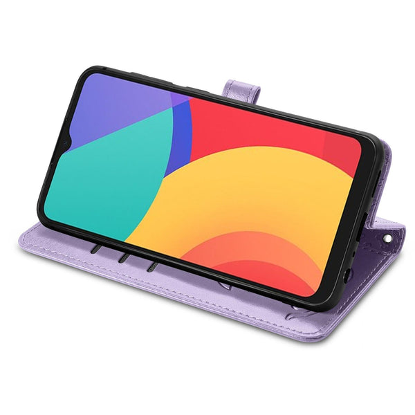 For Alcatel 1S 2021 Lovely Cat and Dog Embossing Pattern Horizontal Flip Leather Case , with Holder & Card Slots & Wallet & Cartoon Clasp & Lanyard(Purple)
