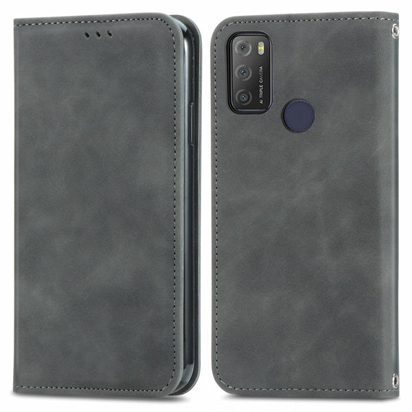 For Alcatel 1S 2021 Retro Skin Feel Business Magnetic Horizontal Flip Leather Case with Holder & Card Slots & Wallet & Photo Frame(Gray)