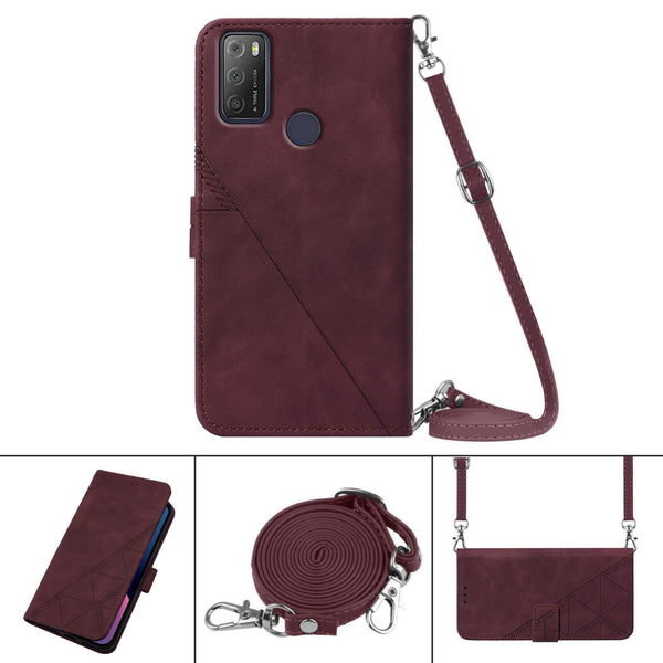 For Alcatel 1S / 3L 2021 Crossbody 3D Embossed Flip Leather Phone Case(Wine Red)