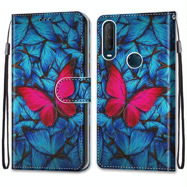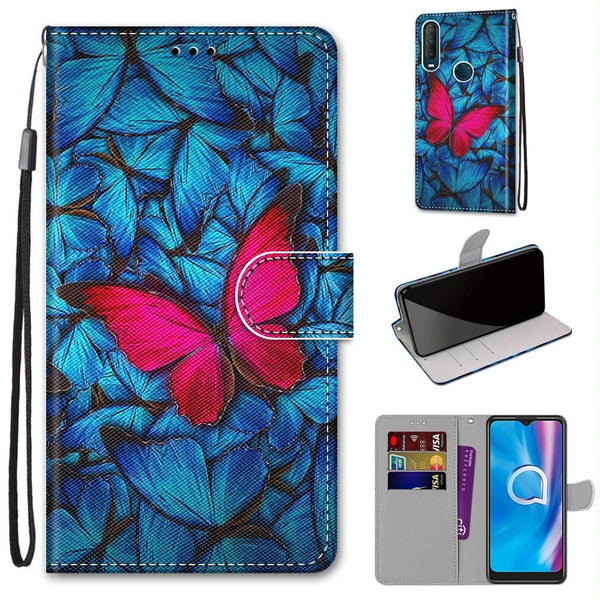 For Alcatel 1SE (2020) Coloured Drawing Cross Texture Horizontal Flip PU Leather Case with Holder & Card Slots & Wallet & Lanyard(Blue Red Butterfly)
