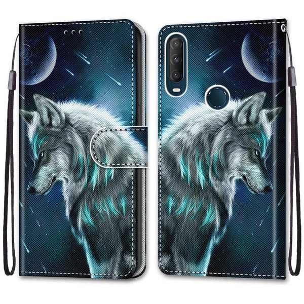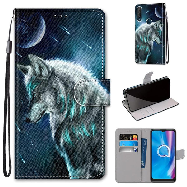 For Alcatel 1SE 2020 Coloured Drawing Cross Texture Horizontal Flip PU Leather Case with Holder & Card Slots & Wallet & Lanyard(Contemplative Wolf)