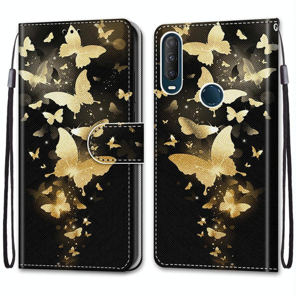 For Alcatel 1SE 2020 Coloured Drawing Cross Texture Horizontal Flip PU Leather Case with Holder & Card Slots & Wallet & Lanyard(Golden Butterfly Group)