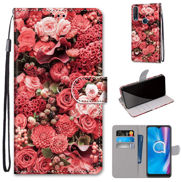 For Alcatel 1SE 2020 Coloured Drawing Cross Texture Horizontal Flip PU Leather Case with Holder & Card Slots & Wallet & Lanyard(Pink Rose Garden)