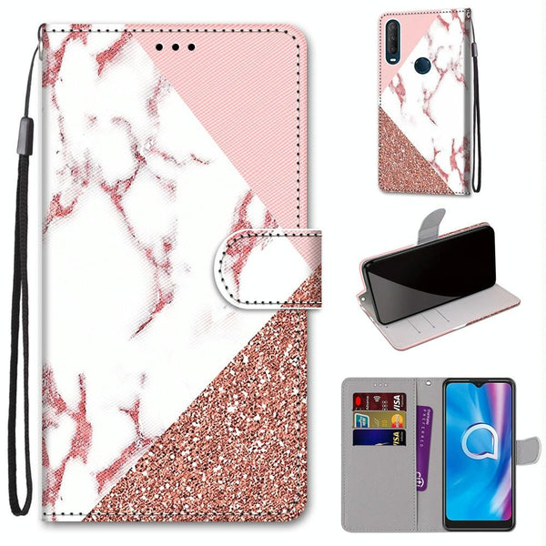 For Alcatel 1SE (2020) Coloured Drawing Cross Texture Horizontal Flip PU Leather Case with Holder & Card Slots & Wallet & Lanyard(Powder Stone Texture)