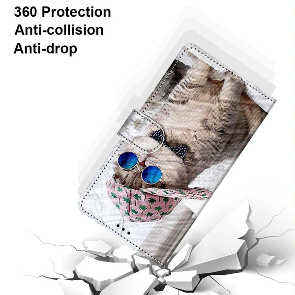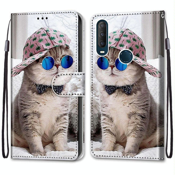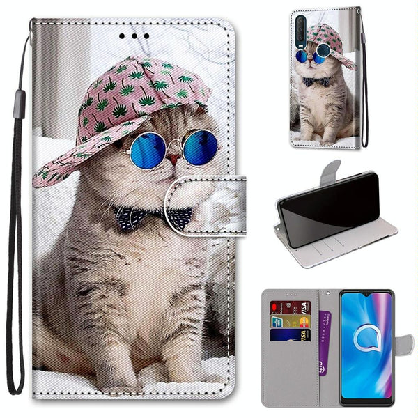For Alcatel 1SE (2020) Coloured Drawing Cross Texture Horizontal Flip PU Leather Case with Holder & Card Slots & Wallet & Lanyard(Slant Hat Blue Mirror Cat)