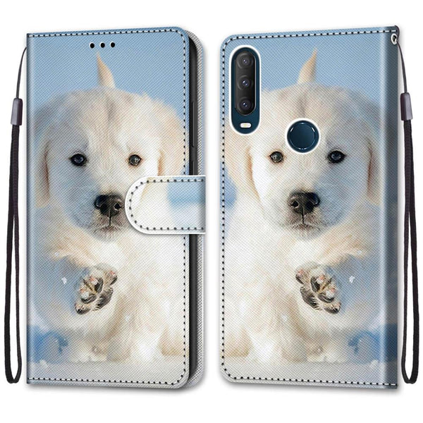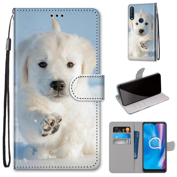 For Alcatel 1SE 2020 Coloured Drawing Cross Texture Horizontal Flip PU Leather Case with Holder & Card Slots & Wallet & Lanyard(Snow Puppy)