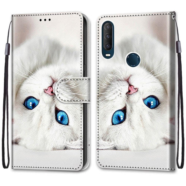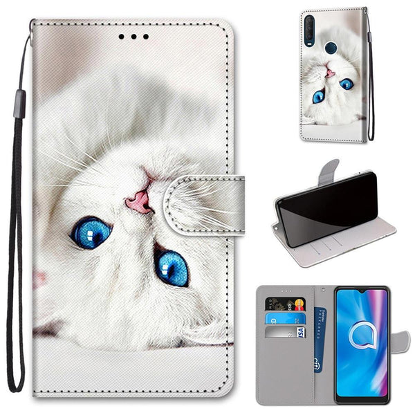 For Alcatel 1SE 2020 Coloured Drawing Cross Texture Horizontal Flip PU Leather Case with Holder & Card Slots & Wallet & Lanyard(White Kitten)