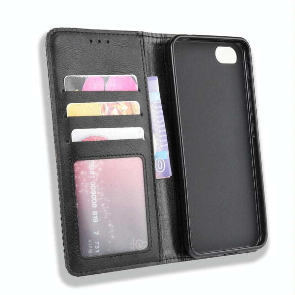For Alcatel 1V (2019) without Fingerprint Hole Magnetic Buckle Retro Crazy Horse Texture Horizontal Flip Leather Case with Holder & Card Slots & Photo Frame(Black)
