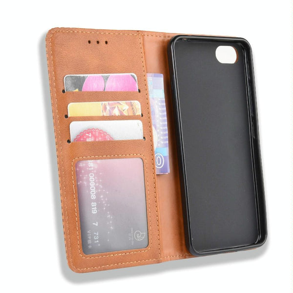 For Alcatel 1V (2019) without Fingerprint Hole Magnetic Buckle Retro Crazy Horse Texture Horizontal Flip Leather Case with Holder & Card Slots & Photo Frame(Brown)