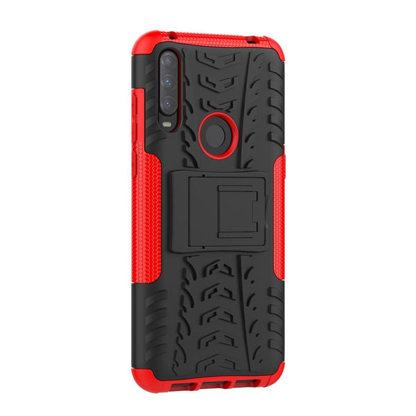 For Alcatel 3L (2020) Tire Texture Shockproof TPU + PC Protective Case with Holder(Red)