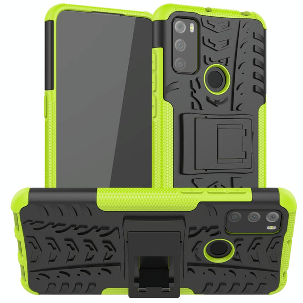 For Alcatel 3L (2021) Tire Texture Shockproof TPU+PC Protective Case with Holder(Green)