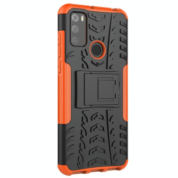 For Alcatel 3L (2021) Tire Texture Shockproof TPU+PC Protective Case with Holder(Orange)